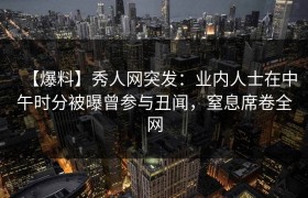 今天中午,网络上突然爆出一则震撼消息,瞬间引起了全网的关注。这则爆料来自于秀人网,一位业内知名人士被...