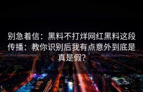 别急着信:黑料不打烊网红黑料这段传播:教你识别后我有点意外到底是真是假?