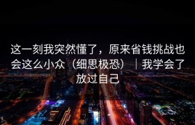 标题:这一刻我突然懂了,原来省钱挑战也会这么小众(细思极恐)|我学会了放过自己 在这个信息爆炸的时代...